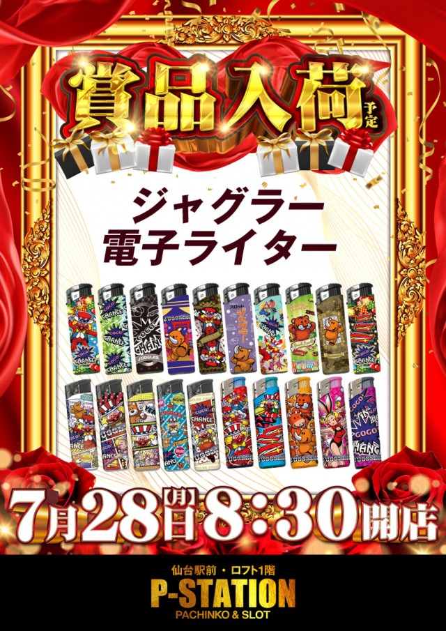 明日は「ジャグラー」電子ライターが賞品入荷予定です♪