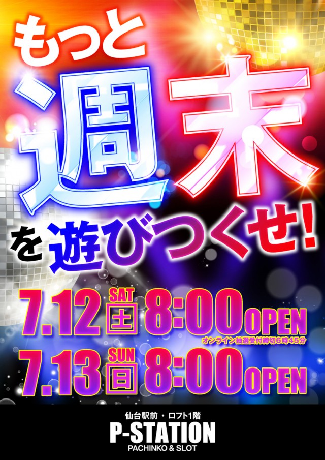 もっと【週末】を遊びつくせ!明日7月13日 8時OPEN!