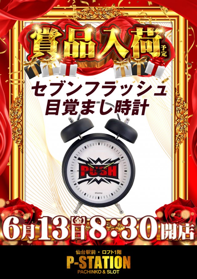 明日は「セブンフラッシュ目覚まし時計」が賞品入荷予定です♪