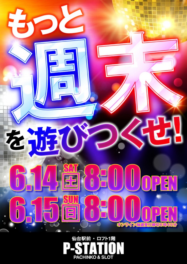 もっと【週末】を遊びつくせ!明日6月14日 8時OPEN!