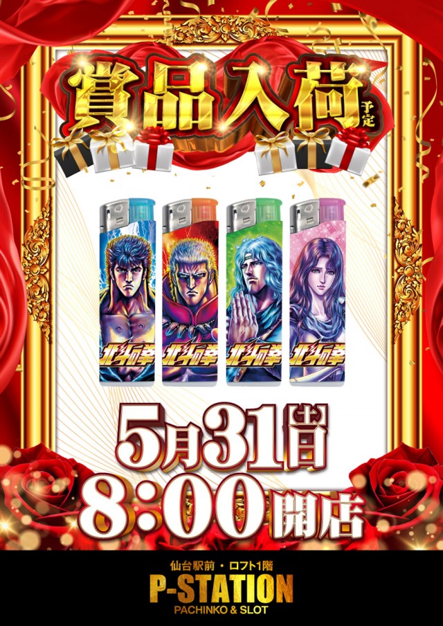 明日は「北斗の拳」の電子ライターが賞品入荷予定です♪