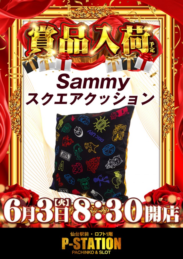 明日はSammy「スクエアクッション」が賞品入荷予定です♪