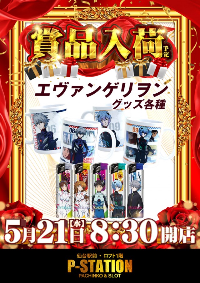 明日は「エヴァンゲリオンのグッズ」が賞品入荷予定です♪