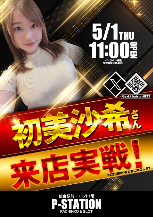 明日5月1日 11時OPEN <初美沙希>さん来店!