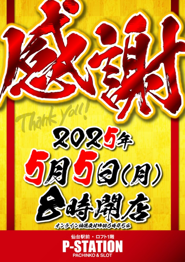 <5月7日 新台入替> 明日5月8日 9時OPEN!