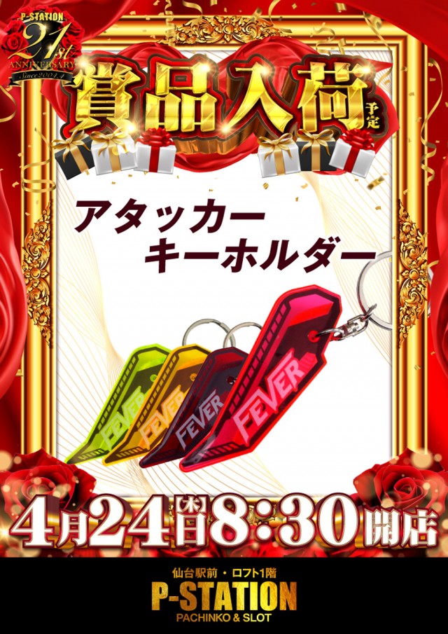明日8時30分OPEN!アタッカーキーホルダーが賞品入荷予定