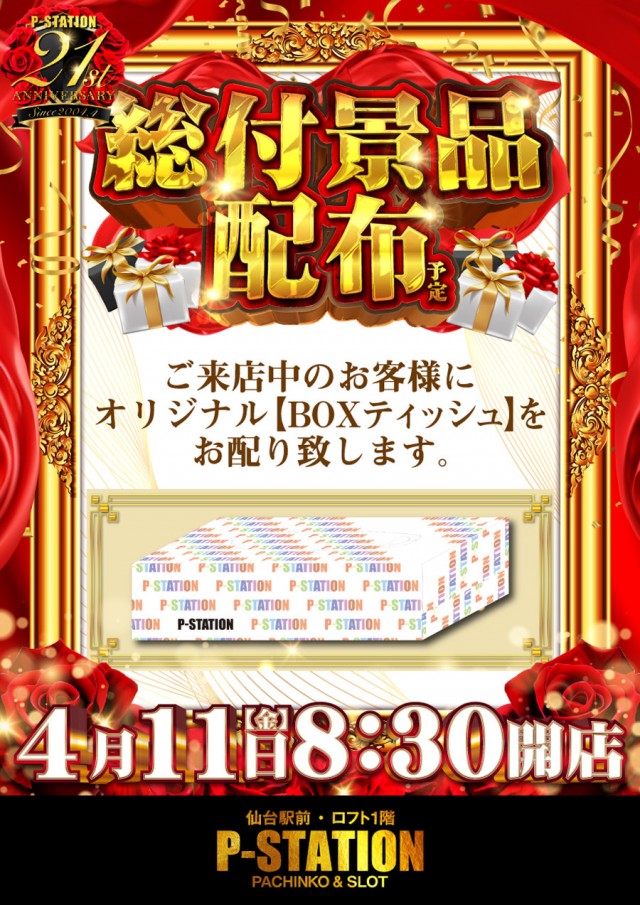 明日4月11日 総付景品オリジナルBOXティッシュを配布予定
