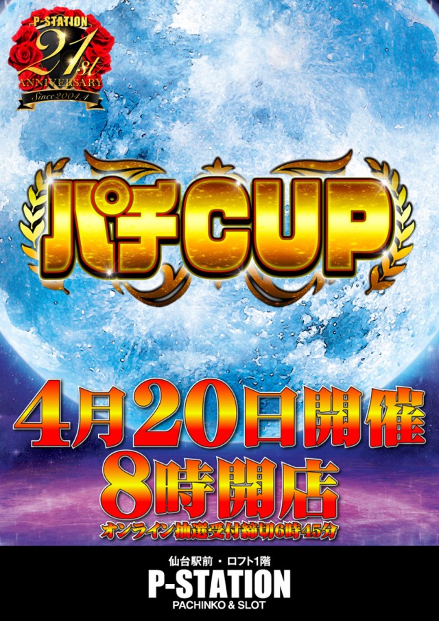 【パチCUP】開催!明日4月20日 8時OPEN!