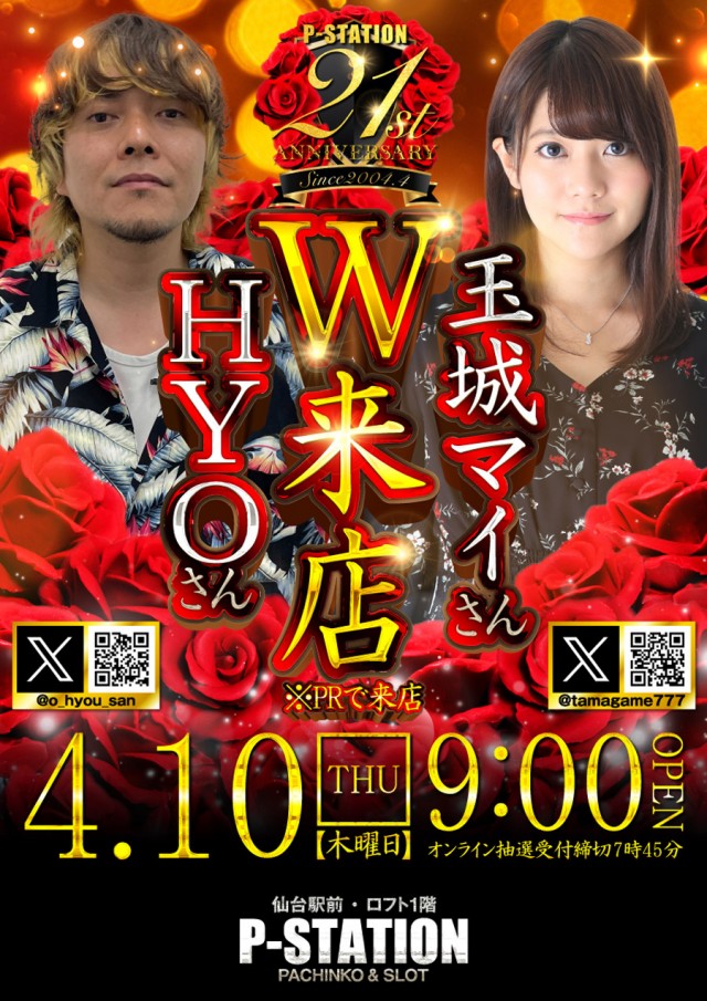 明日4月10日 【W来店】HYOさん&玉城マイさん
