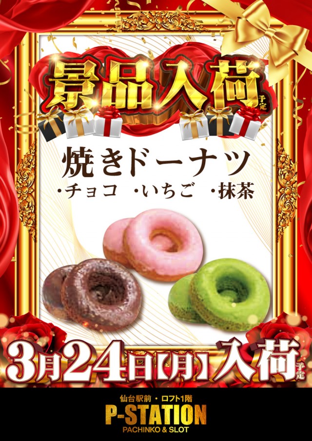 明日8時30分OPEN!焼きドーナツが景品で入荷予定です♪