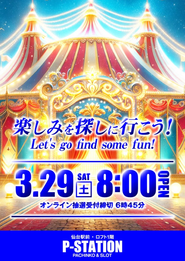 明日8時OPEN!P-STATIONの【週末】