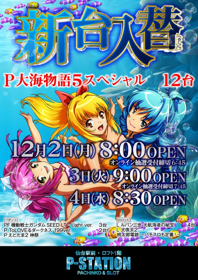 <12月2日 新台入替> 明日12月3日 9時OPEN!