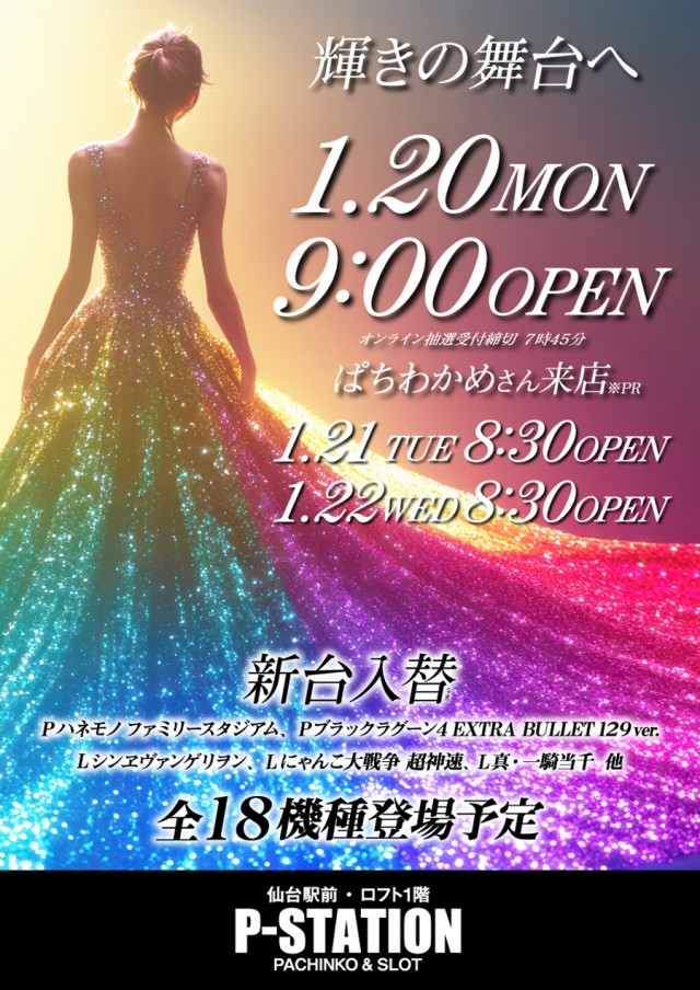 <1月20日 新台入替> 明日22日 8時30分OPEN!