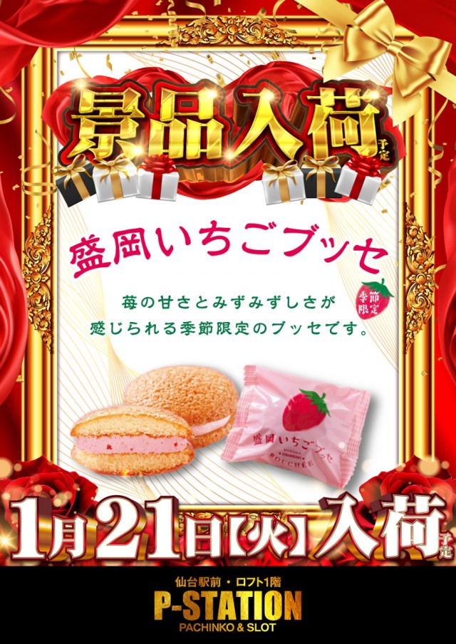 <1月20日 新台入替> 明日いちごブッセ景品入荷予定!