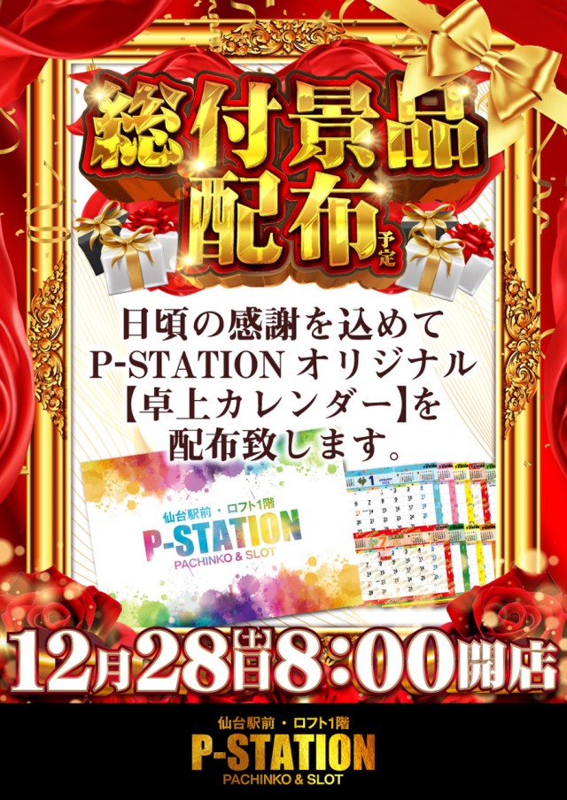 明日12月28日 総付景品オリジナルカレンダーを配布予定です