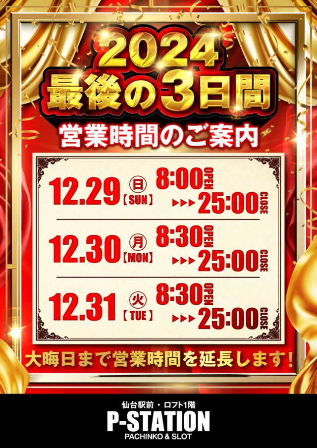 2024年最後の3日間!【営業時間のご案内】