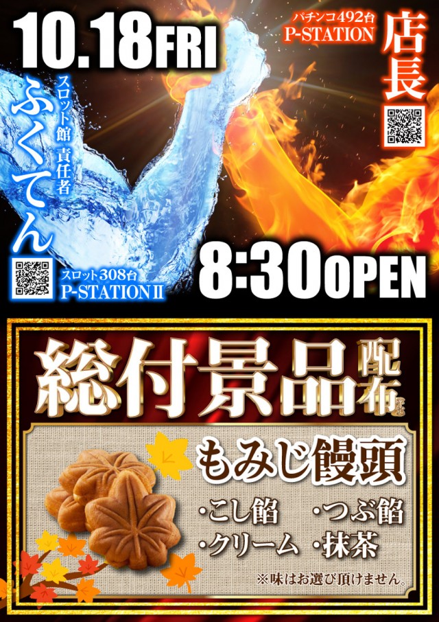 明日は総付景品の「もみじ饅頭」を配布予定です♪