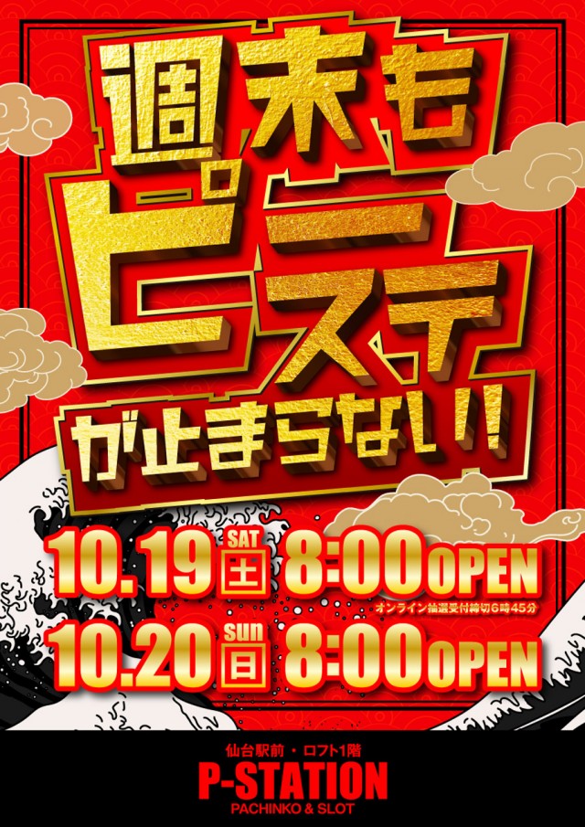 明日10月19日 8時OPEN!週末もピーステが止まらない!