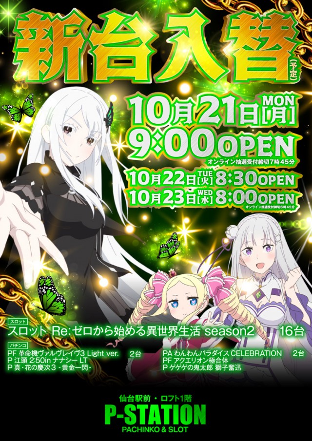 明日10月20日 8時OPEN!週末もピーステが止まらない!