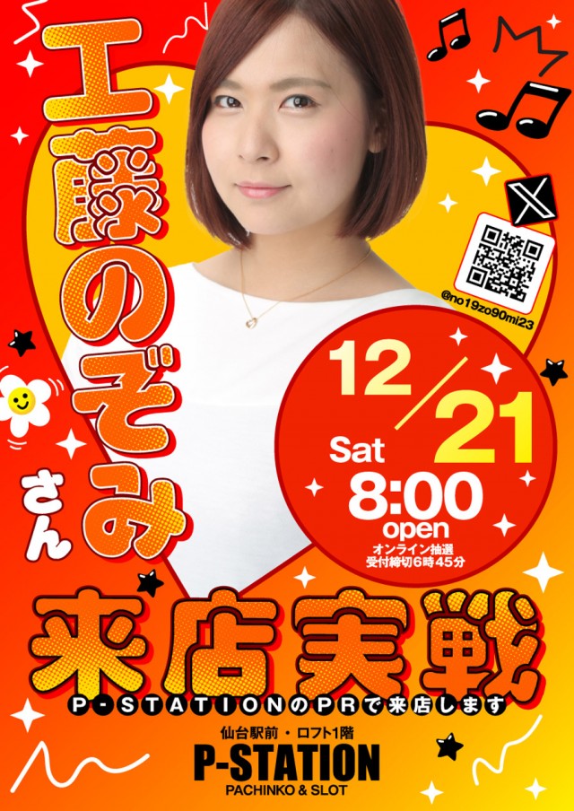 明日12月21日 8時OPEN <工藤のぞみさん>来店!