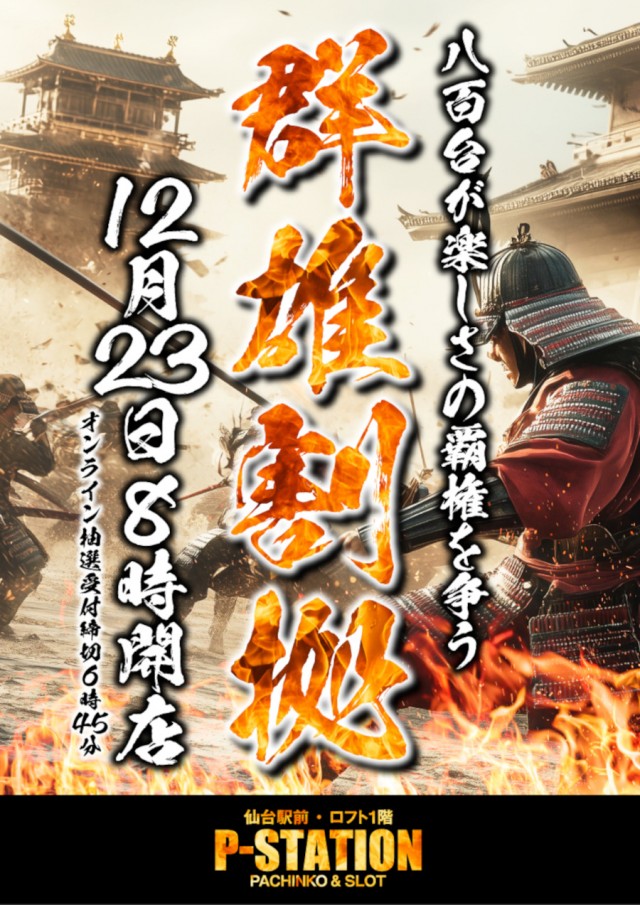 <群雄割拠!>明日12月23日(月) 8時OPEN!