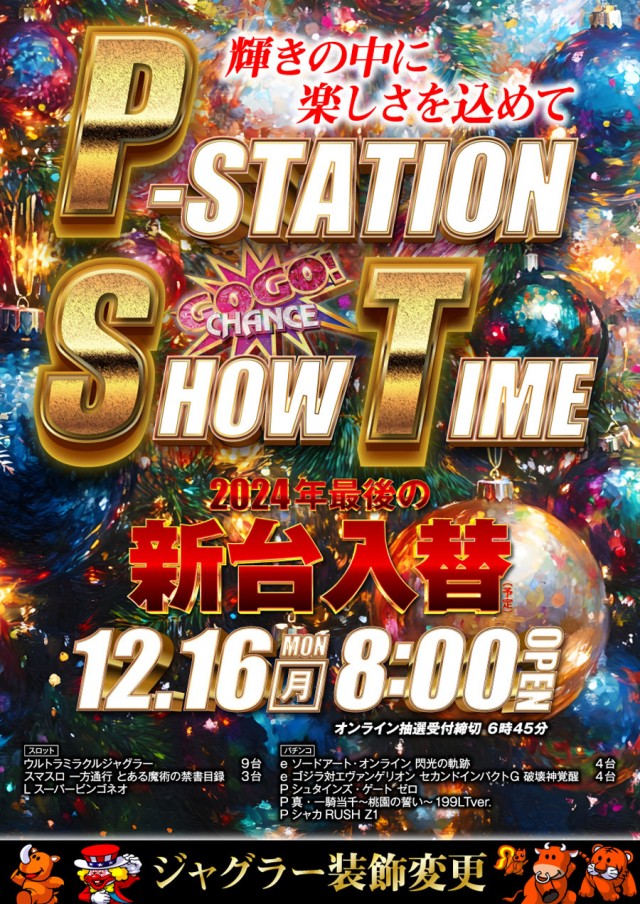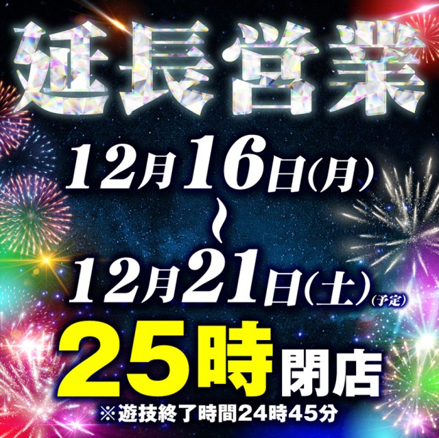 明日12月16日<新台入替>8時OPEN予定!