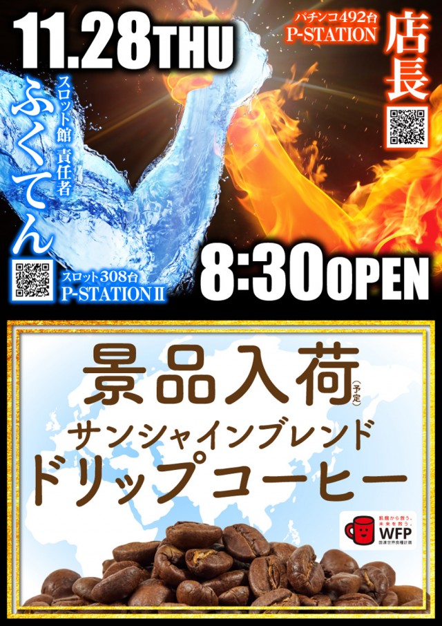 明日8時30分OPEN!ドリップコーヒーが景品で入荷予定です