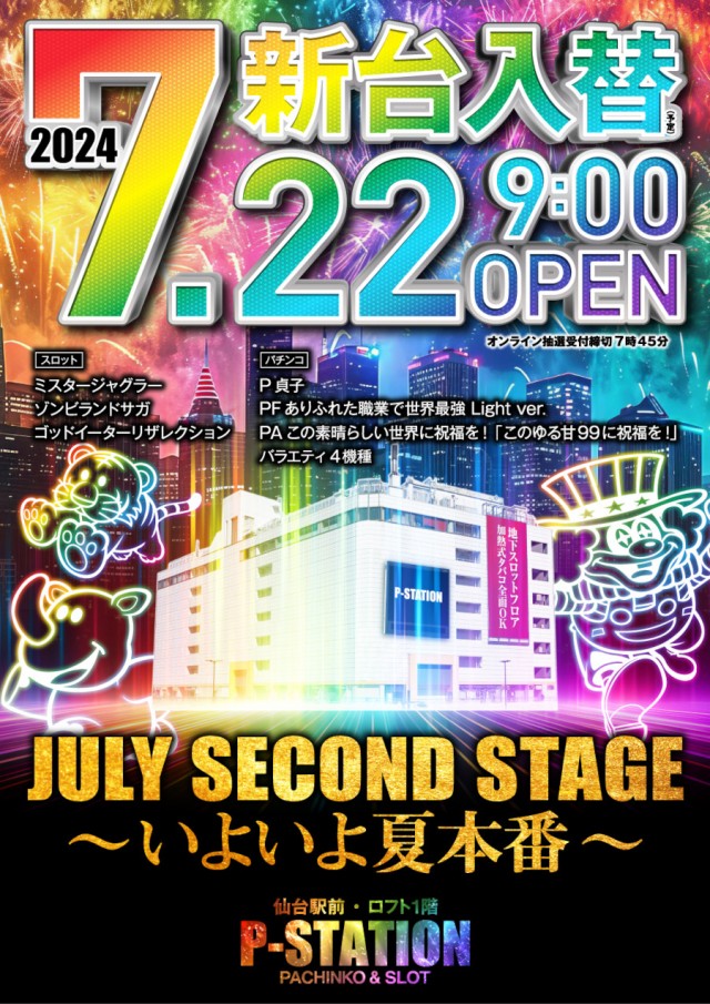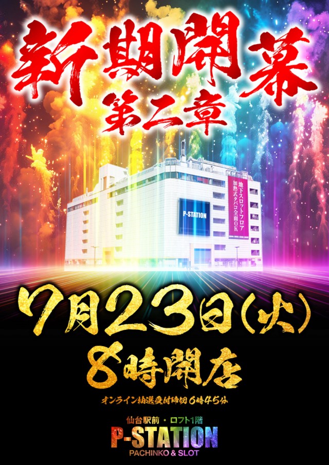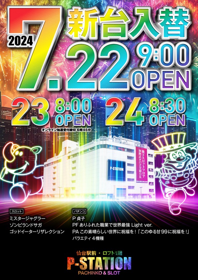 <7月22日 新台入替> 明日7月24日 8時30分OPEN