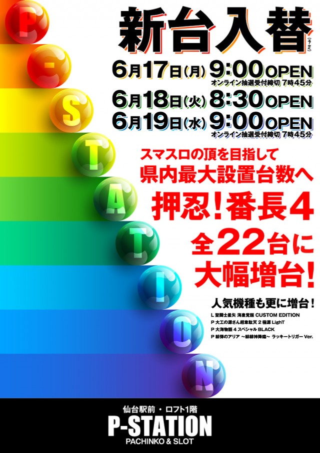 <6月17日 新台入替> 明日6月18日 8時30分OPEN