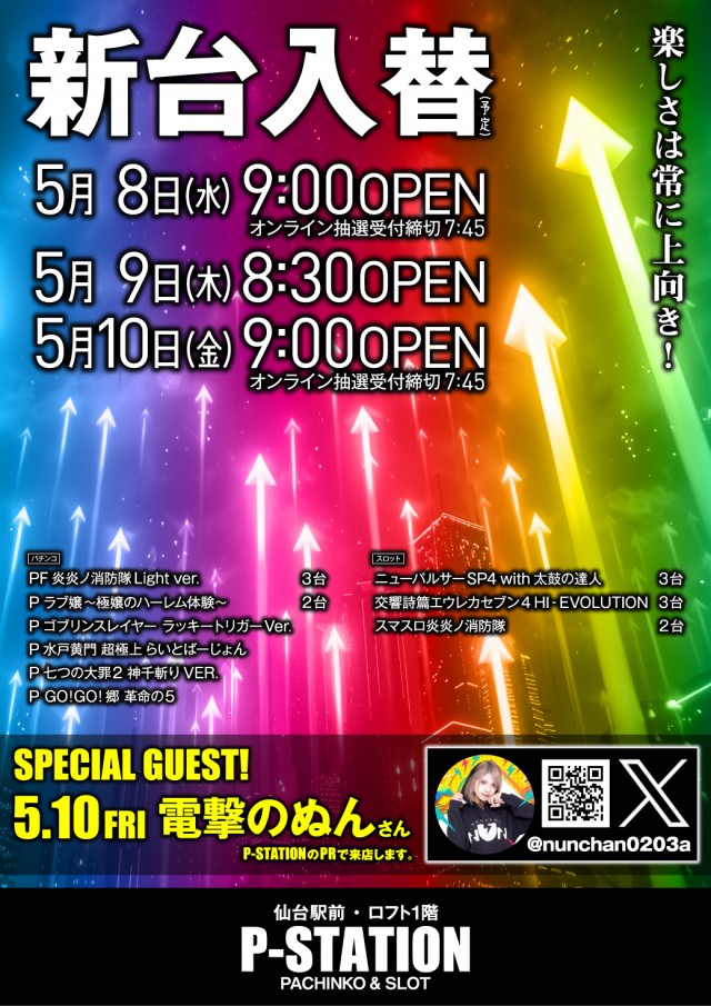 <5月8日 新台入替> 明日5月9日 8時30分OPEN!