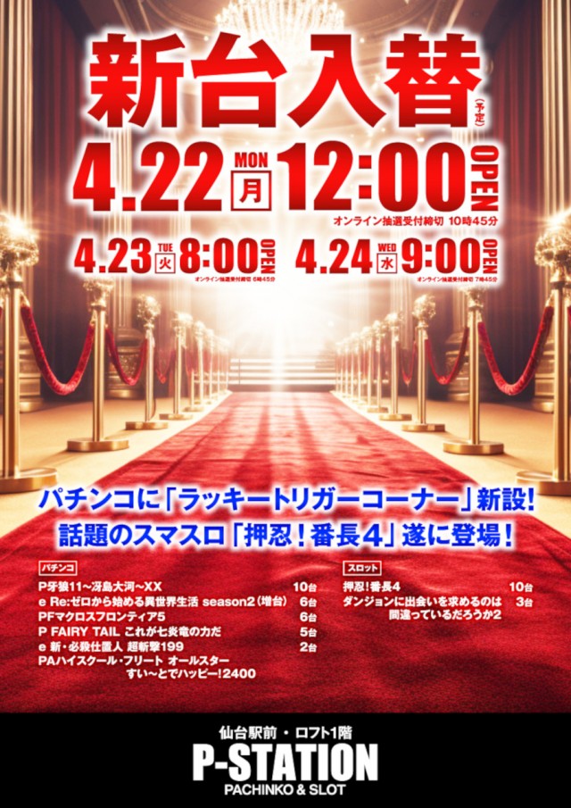 東北の玄関!仙台駅前ロフト1Fパチンコ専門店『P-STATION』