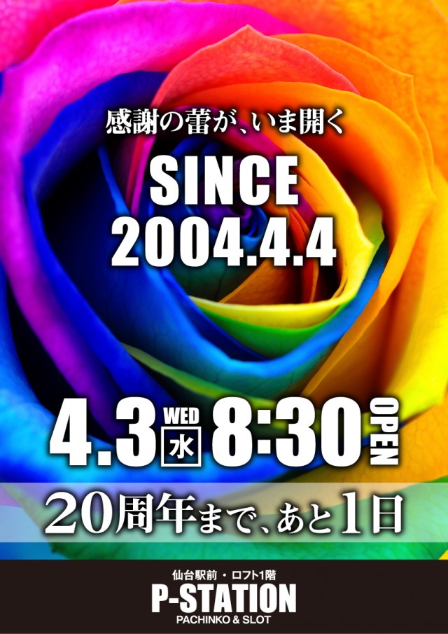 <おかげ様で20周年>明日4月5日8時OPEN!