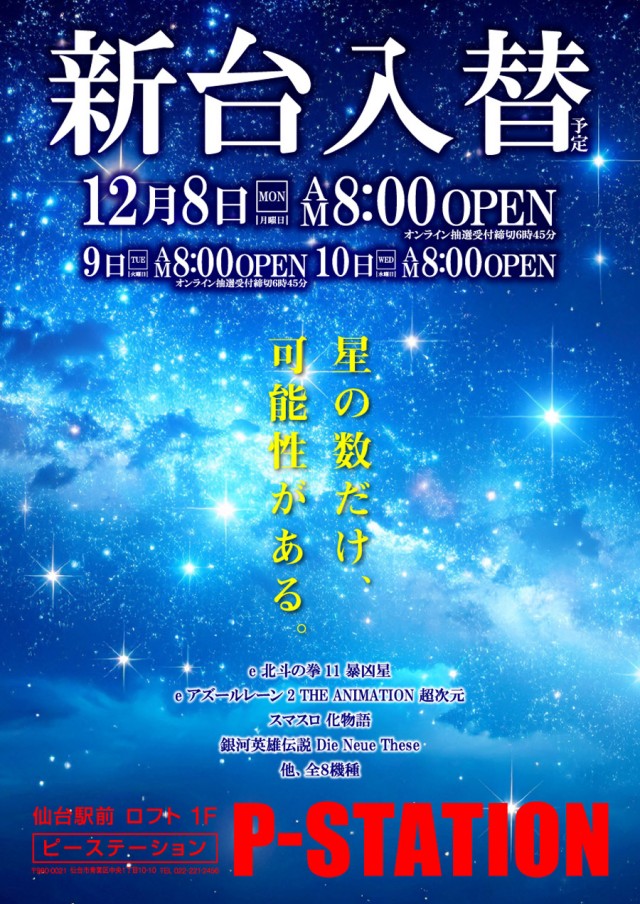 <12月8日 新台入替> 明日12月10日 8時OPEN!