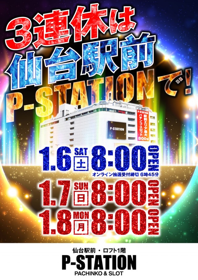 <3連休はP-STATIONで!>1月7日 8時OPEN!
