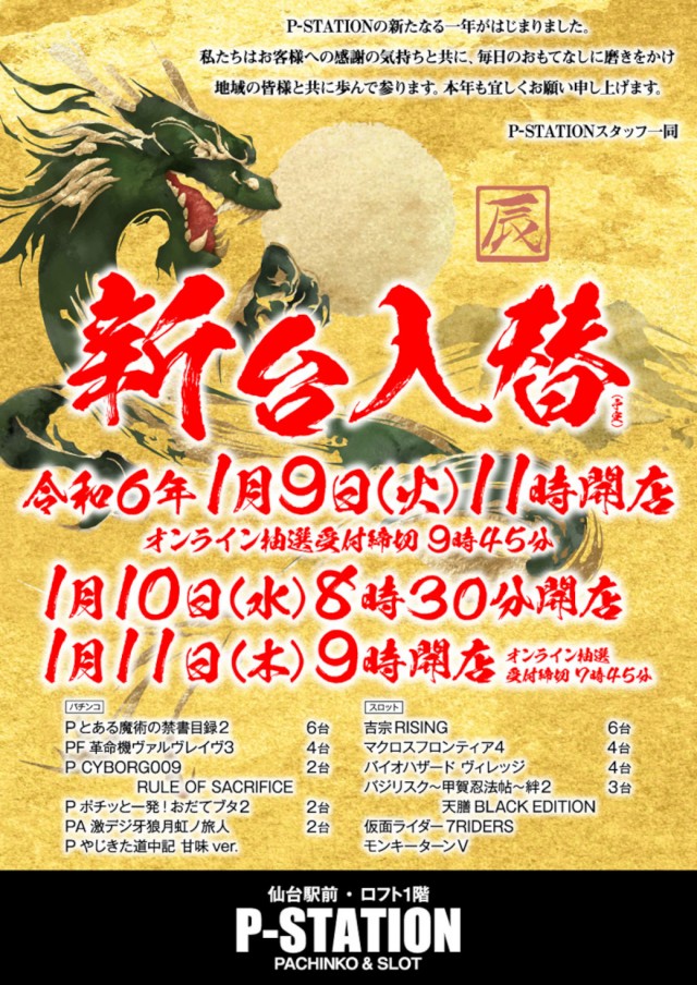 <3連休はP-STATIONで!>1月8日 8時OPEN!