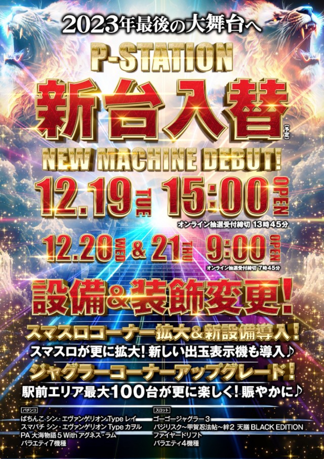 <2023年最後の大舞台へ>本日 新台入替15時開店予定!