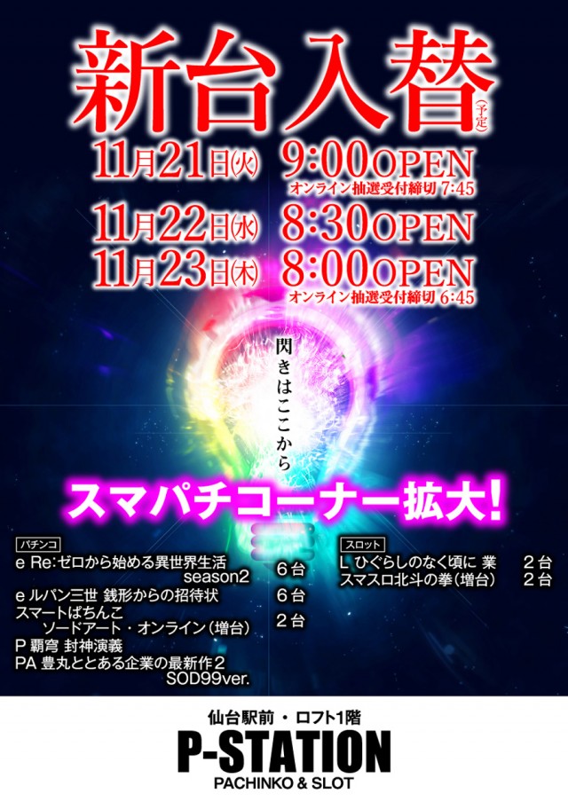 ★★本日11月21日(火)新台入替9時OPEN予定!★★