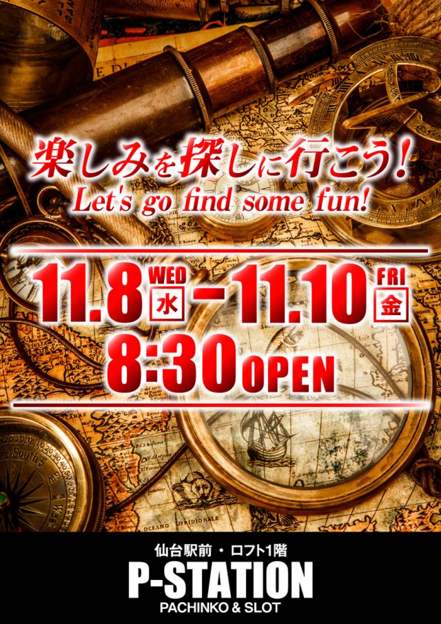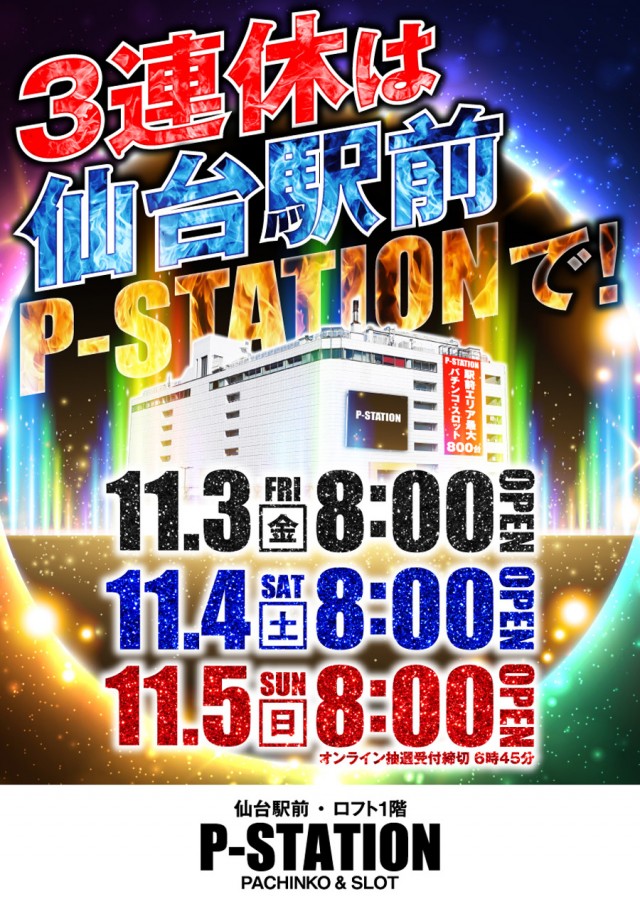 <3連休はP-STATIONで!>11月4日 8時OPEN!