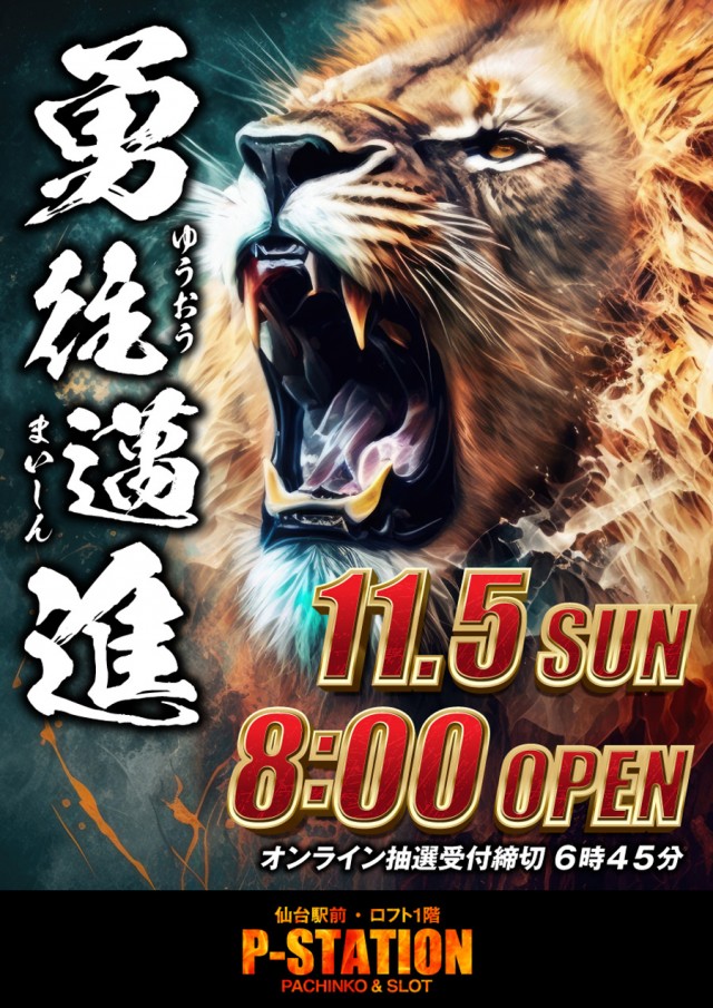 <勇往邁進> 明日11月5日(日) 8時OPEN!