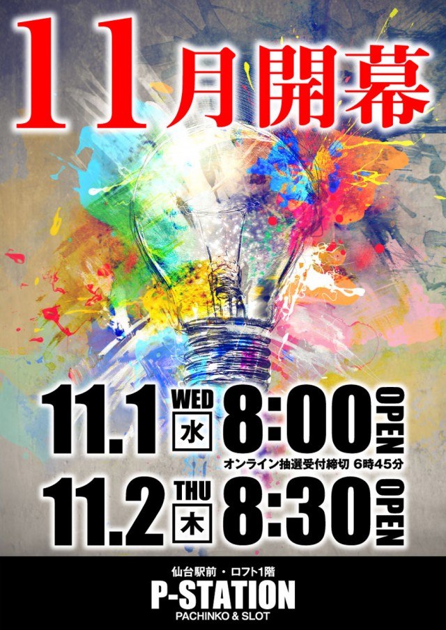 <11月開幕> 明日11月1日(水) 8時OPEN!
