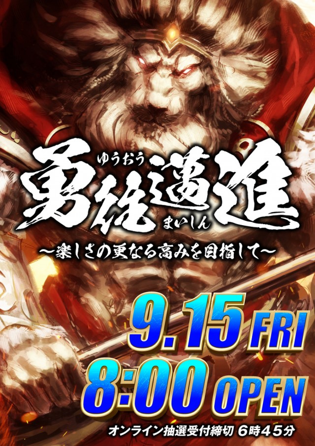 <勇往邁進> 明日9月15日(金) 8時OPEN!