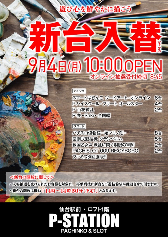 ★★本日9月4日(月)新台入替10時OPEN予定!★★