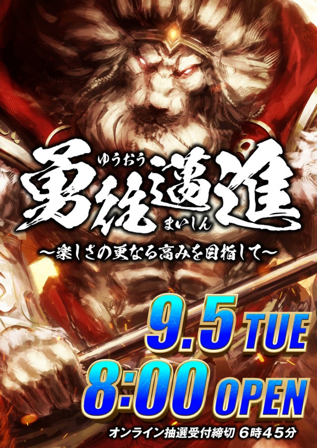 <勇往邁進> 明日9月5日(火) 8時OPEN!