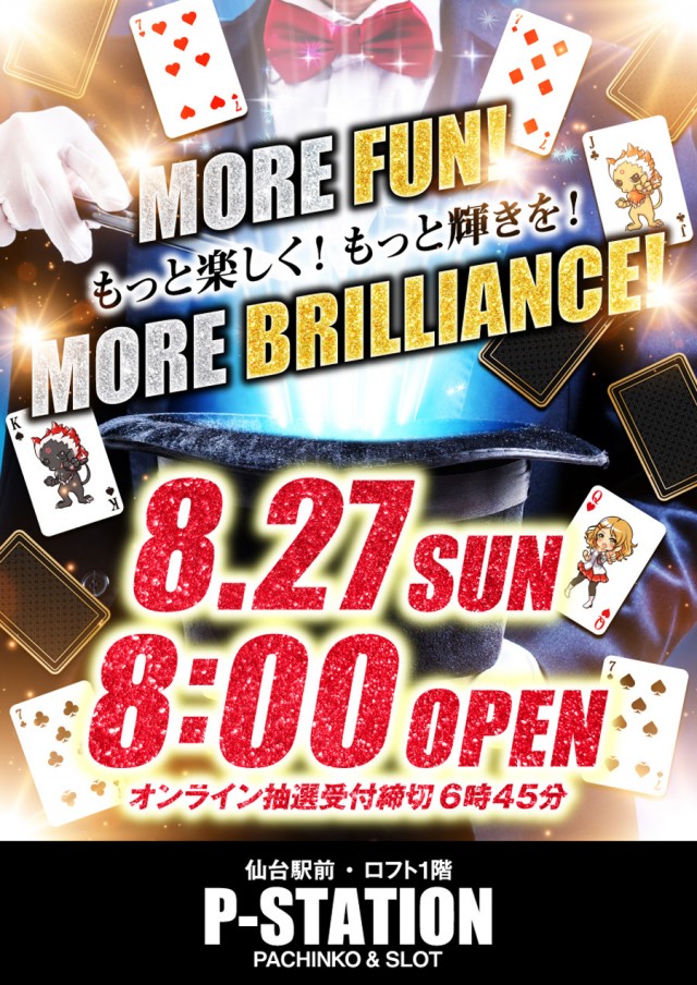 <もっと輝きを!>明日8月27日(日) 8時OPEN!