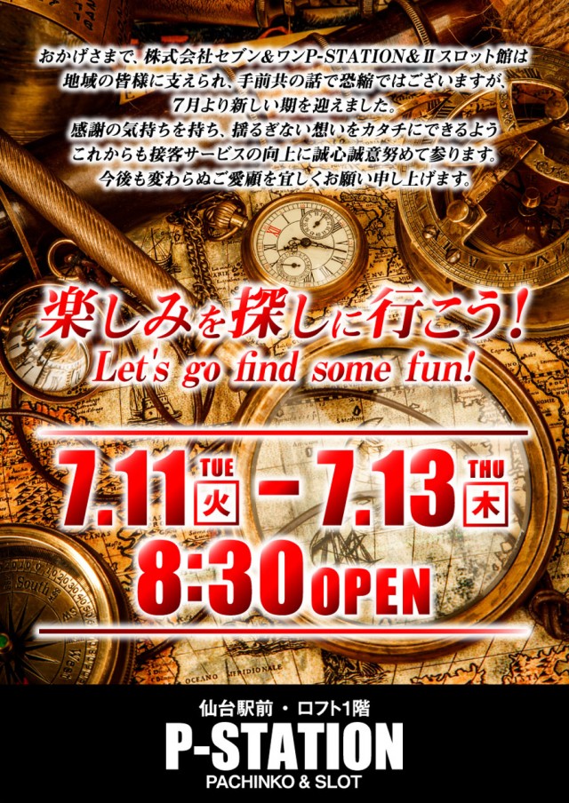 楽しみを探しに行こう! 7月11日(火) 8時30分開店!