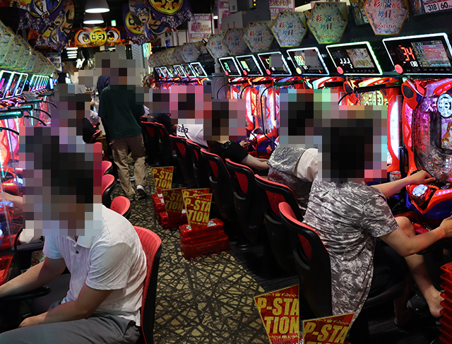 ホールに潜む龍の存在を探るべく足を踏み入れると、楽しそうに遊技をおこなっているプレイヤーの姿が目に飛び込んできた。