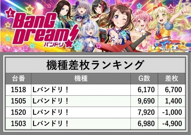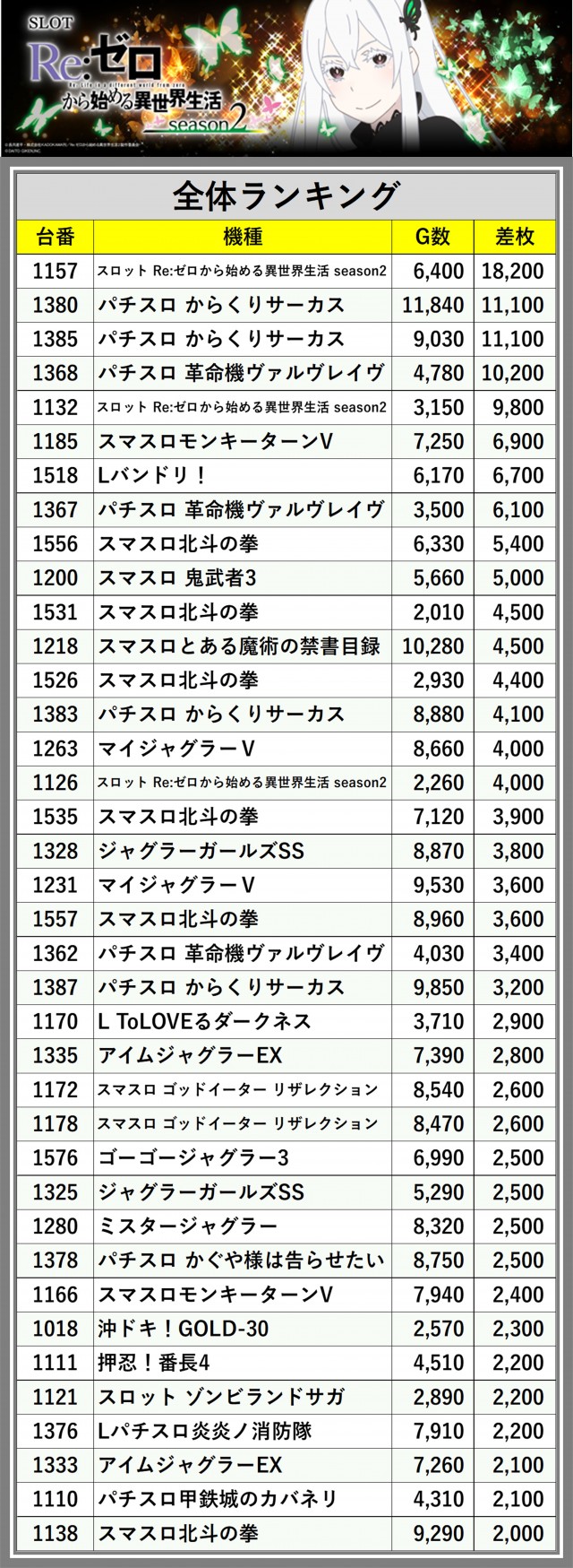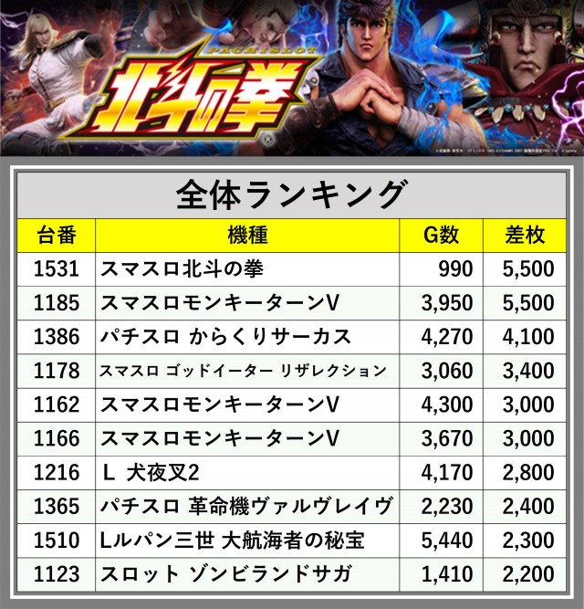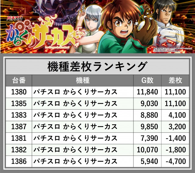 ※差枚数順に掲載しています