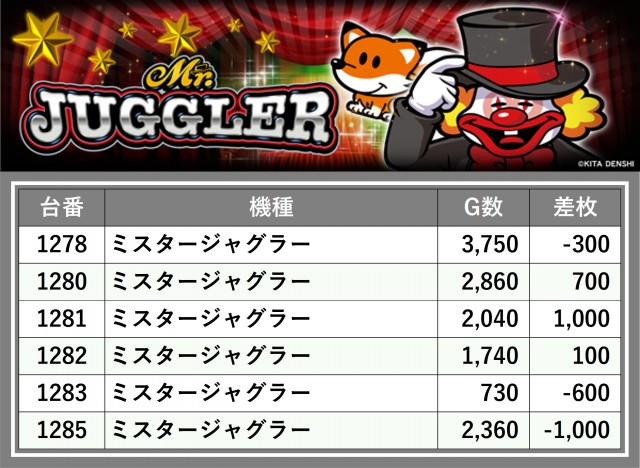 ※台番順に掲載しています