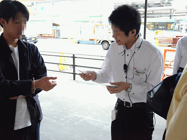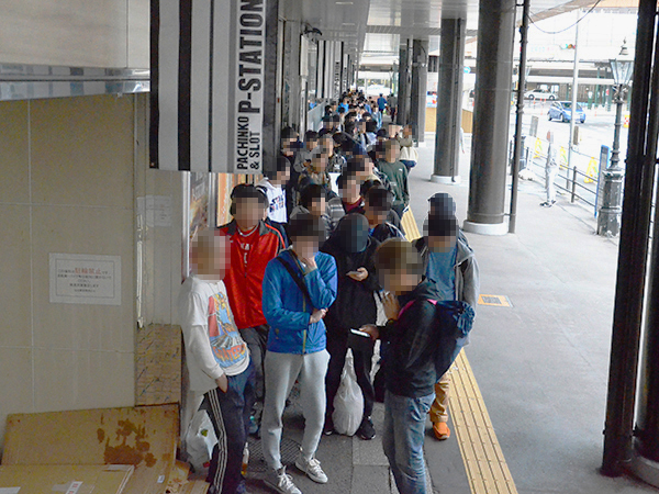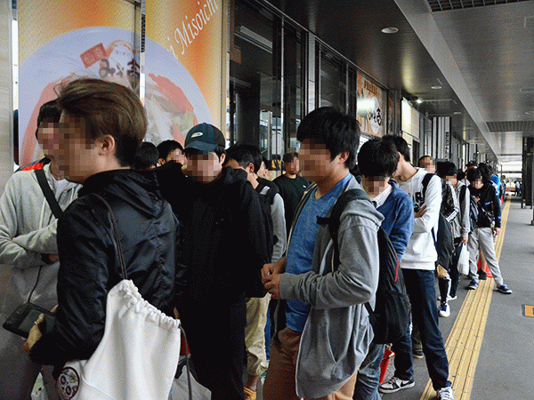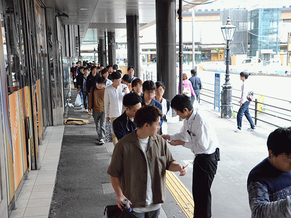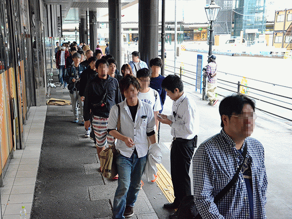 午前7時前に、整理券配布の準備で列を詰めたところ