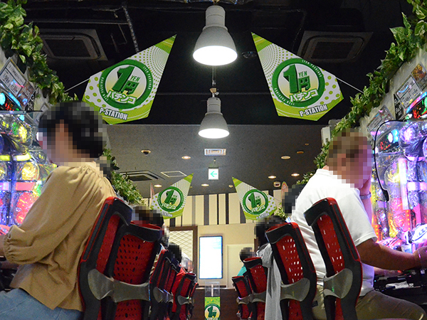 1円パチンココーナーは装飾をリニューアル。緑を基調とした爽やかなイメージで、ファンの皆さんをやさしく迎え入れていました。